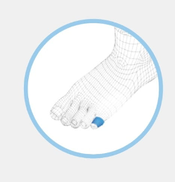 - Osłania zdeformowane oraz obolałe miejsca małych palców stóp.