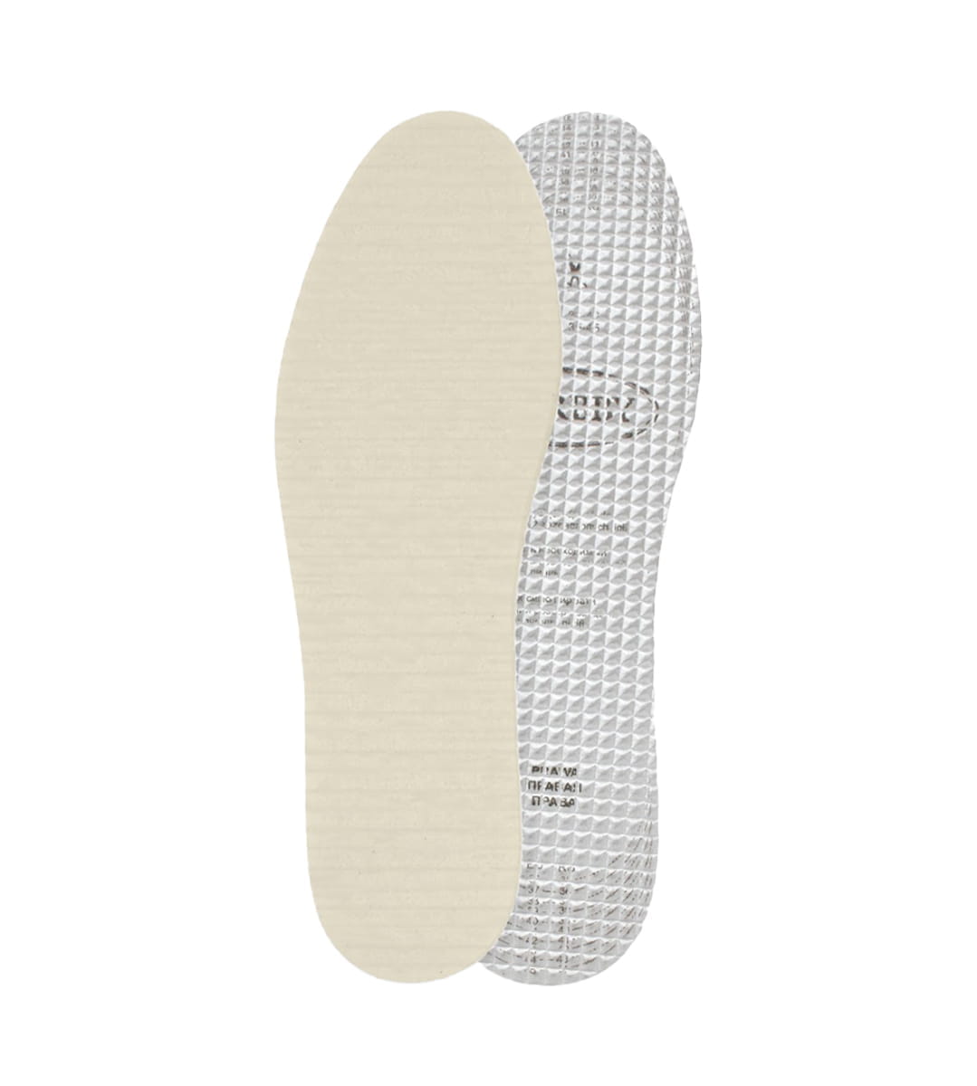Trójwarstwowe wkładki zimowe z folią aluminiową, zapewniające ciepło i komfort stopom w chłodne dni.