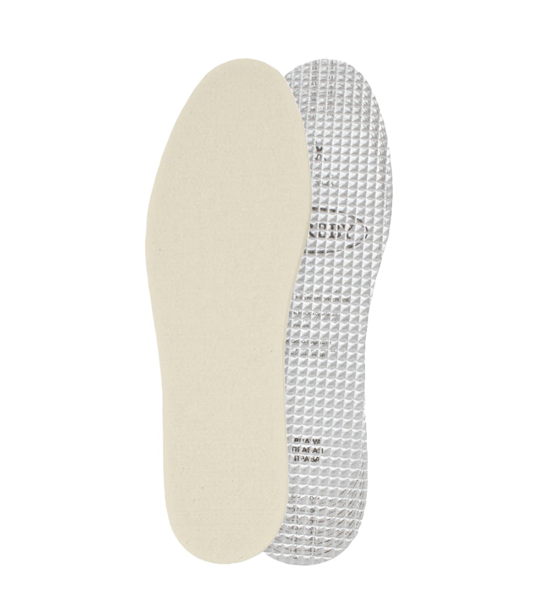 Trójwarstwowe wkładki zimowe z folią aluminiową, zapewniające ciepło i komfort stopom w chłodne dni.